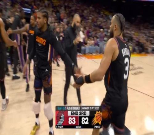 第四节一开始,太阳已经反超比分,他们在前5分钟内打出16比4的攻势,将领先分差拉开到11分。