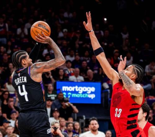 开拓者的侧翼防守质量确实不尽如人意,格林、布克和狄龙三名侧翼全部得分上双,而且得分比较均衡,只有格林突出一些。