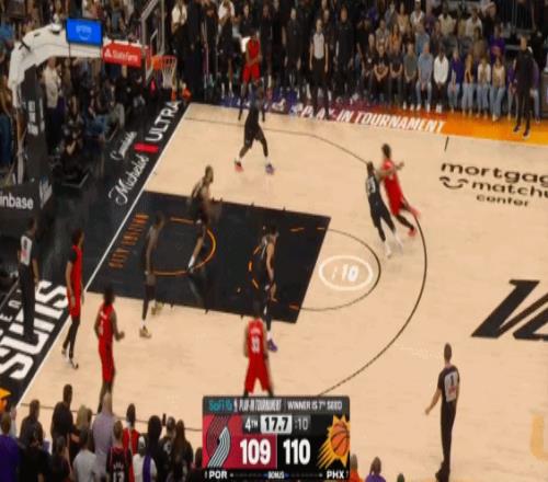 开拓者再叫暂停,回来之后还是阿夫迪亚持球单挑,压着古德温就突进去上篮得手,并且加罚命中,开拓者再次以112比110反超太阳!