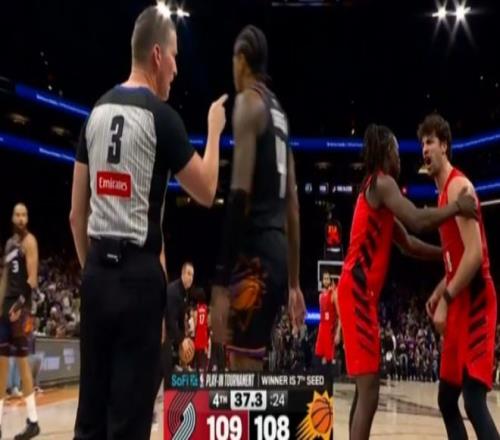 还剩37秒,阿夫迪亚抢到后场篮板,自己推进,强突上篮命中,开拓者109比108反超太阳!