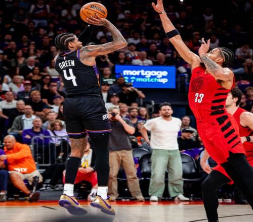 比赛开打之后,太阳全队都找不到三分球手感,而且防守端也没有限制住阿夫迪亚的发挥,让后者半场就砍下了16分7助的个人数据,帮助客场作战的开拓者,一度建立起了14分的领先优势,逆境中太阳双子星开始爆发,布克半场飙下16分,杰伦格林更是里突外投两节砍下22分,帮助太阳半场结束前,将比分追至62-65。
